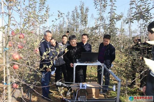 圖為西北農(nóng)林科技大學(xué)機電學(xué)院果園機械研究團隊現(xiàn)場演示
