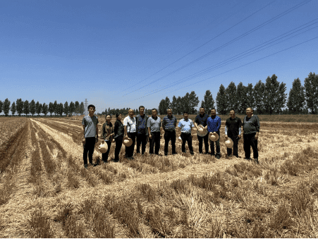 6月15日陜西省農(nóng)業(yè)機(jī)械研究所有限公司相關(guān)技術(shù)人員應(yīng)陜西省農(nóng)業(yè)機(jī)械產(chǎn)業(yè)技術(shù)體系邀請,赴寶雞市陳倉區(qū)小麥寬幅播種試驗示范基地參加了現(xiàn)場實(shí)收測產(chǎn)和研討會。
