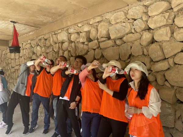 團隊項目。整個拓展活動過程中,面對烈日驕陽,沒有一人退縮,隊員們彼此信任,相互鼓勵、相互配合,勇往直前。從開始的各自為營,到最后的并肩作戰(zhàn),團隊成員配合越來越默契,順利完成一個又一個拓展任務(wù),團隊溝通能力、協(xié)作能力、組織力、領(lǐng)導(dǎo)力、執(zhí)行力得到了提升。