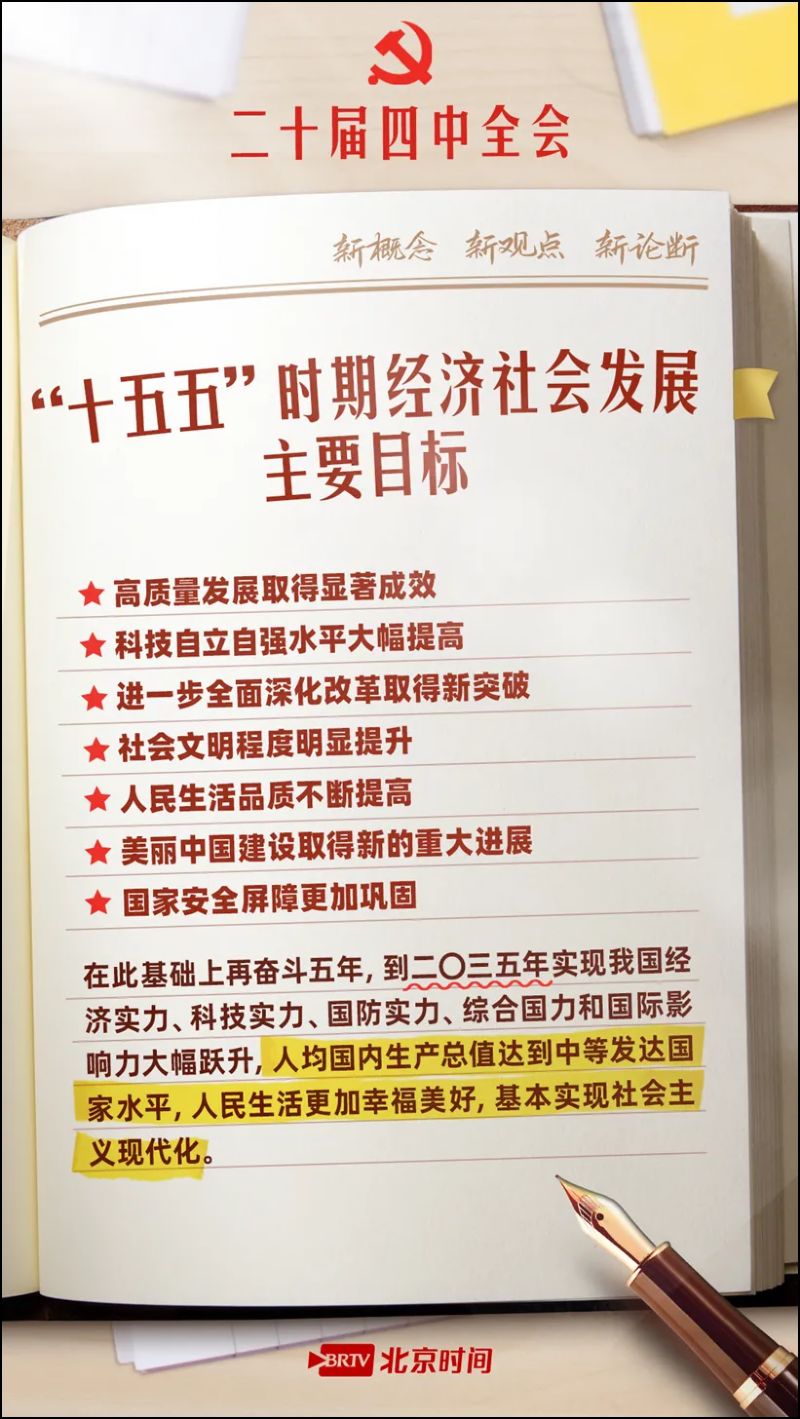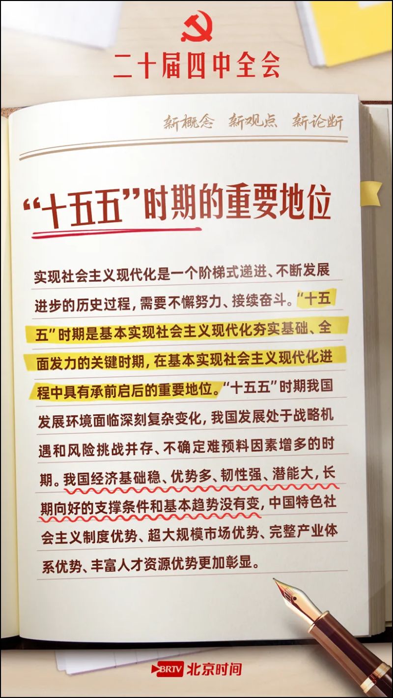 10月23日,黨的二十屆四中全會公報重磅發(fā)布,為“十五五”時期發(fā)展錨定航向,更向2035年基本實現(xiàn)社會主義現(xiàn)代化目標吹響號角。公報中提出了哪些新概念、新觀點、新論斷?“十五五”時期我國經(jīng)濟社會發(fā)展有哪些主要目標?收藏這份學(xué)習(xí)筆記,錨定目標,努力奮斗!