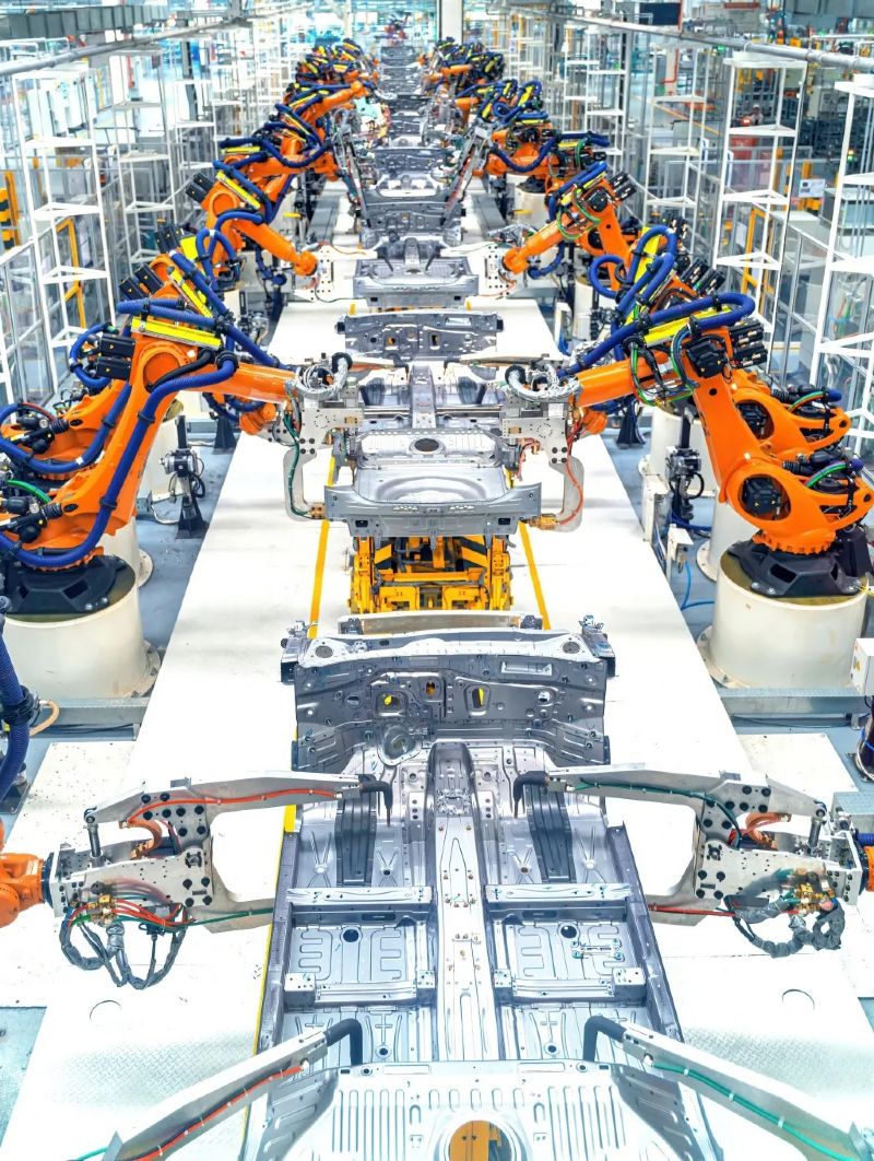 現(xiàn)代化的汽車制造廠焊接裝配線。(圖/視覺(jué)中國(guó))