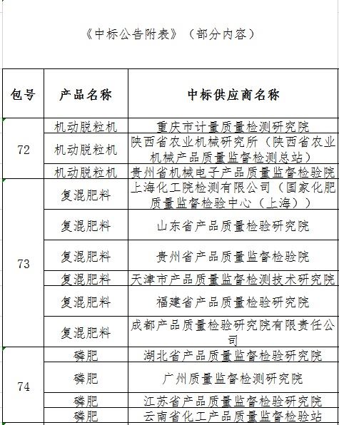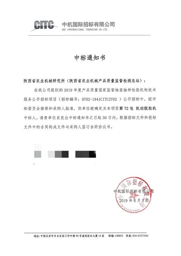 據(jù)中國(guó)政府采購(gòu)網(wǎng)消息,中機(jī)國(guó)際招標(biāo)有限公司受國(guó)家市場(chǎng)監(jiān)督管理總局科技和財(cái)務(wù)司委托,根據(jù)《中華人民共和國(guó)政府采購(gòu)法》等有關(guān)規(guī)定,對(duì)2019年度產(chǎn)品質(zhì)量國(guó)家監(jiān)督抽查抽樣檢驗(yàn)機(jī)構(gòu)技術(shù)服務(wù)公開招標(biāo)項(xiàng)目進(jìn)行公開招標(biāo)。6月5日,中國(guó)政府采購(gòu)網(wǎng)發(fā)布國(guó)家市場(chǎng)監(jiān)督管理總局科技和財(cái)務(wù)司2019年度產(chǎn)品質(zhì)量國(guó)家監(jiān)督抽查抽樣檢驗(yàn)機(jī)構(gòu)技術(shù)服務(wù)公開招標(biāo)項(xiàng)目中標(biāo)公告,陜西省農(nóng)業(yè)機(jī)械研究所(陜西省農(nóng)業(yè)機(jī)械產(chǎn)品質(zhì)量監(jiān)督檢測(cè)總站)一舉中標(biāo),成為國(guó)家監(jiān)督抽查機(jī)動(dòng)脫粒機(jī)產(chǎn)品承檢機(jī)構(gòu),并是三家單位中的牽頭單位。這是我所(站)首次參加國(guó)抽投標(biāo)并中標(biāo)承擔(dān)國(guó)家級(jí)監(jiān)督抽查任務(wù)。