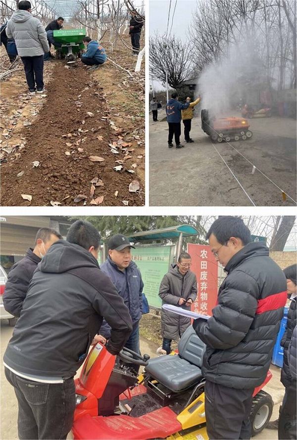 2023年2月10日陜西省農(nóng)業(yè)機(jī)械產(chǎn)品質(zhì)量監(jiān)督檢測(cè)總站受西安市農(nóng)機(jī)監(jiān)理與推廣總站委托,按照驗(yàn)證方案要求,對(duì)西安市果業(yè)生產(chǎn)全程機(jī)械化示范基地引進(jìn)的果業(yè)新機(jī)具自走式多功能施肥機(jī)、乘坐式割草機(jī)、履帶自走式風(fēng)送噴霧機(jī)進(jìn)行性能測(cè)定工作,驗(yàn)證了該類機(jī)具在我省果園的適用程度,對(duì)我省引進(jìn)果園機(jī)具提供了技術(shù)支撐。